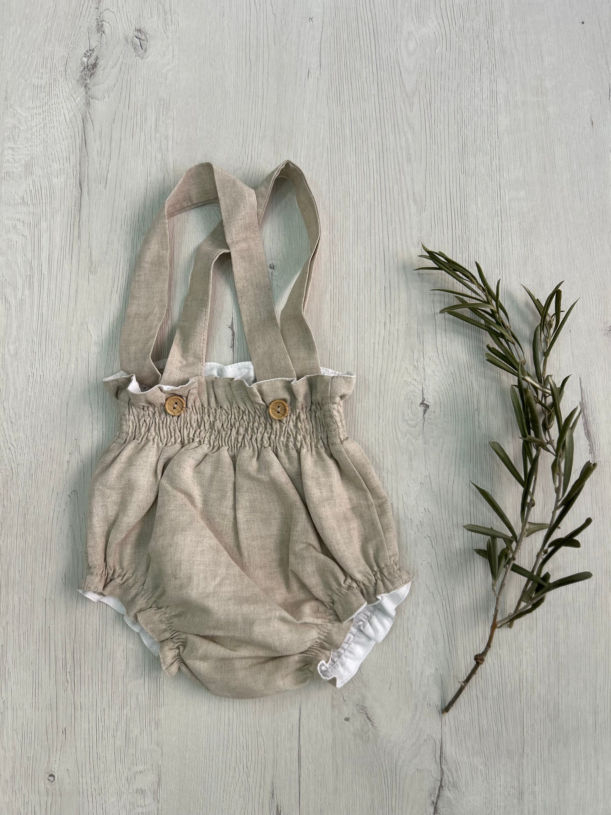 Cubrepañal rosado, está confeccionado en lino en color natural