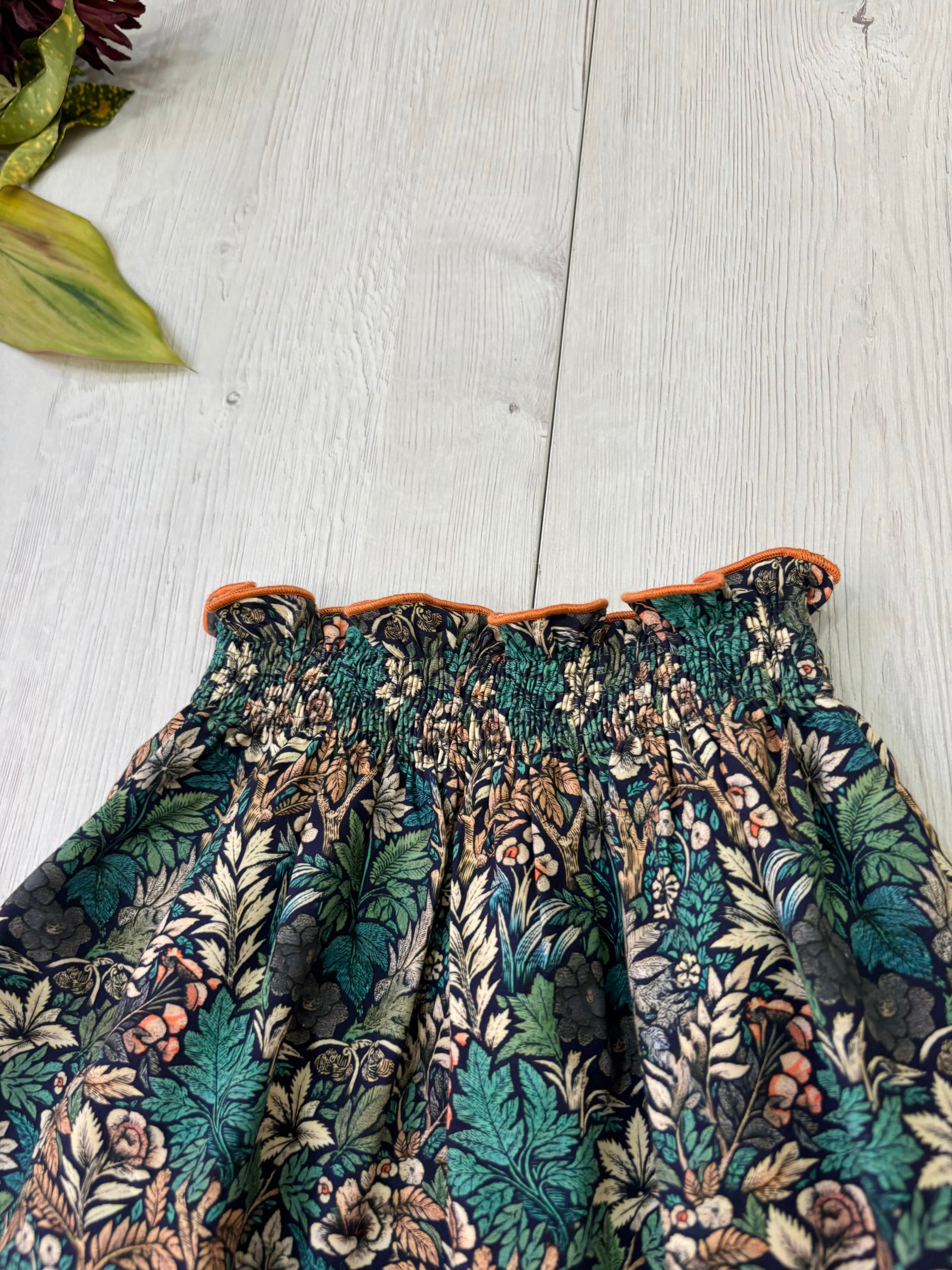 Falda de talle alto y cintura engomada que hará las delicias de las princesas de la casa. Su tejido es 100% algodón y pertenece a nuestra colección Iroko, estampada en exclusiva para ILÓ-LILÓ, con un juego de flores muy originales en unos tonos preciosos y muy vivos, fácilmente combinables.