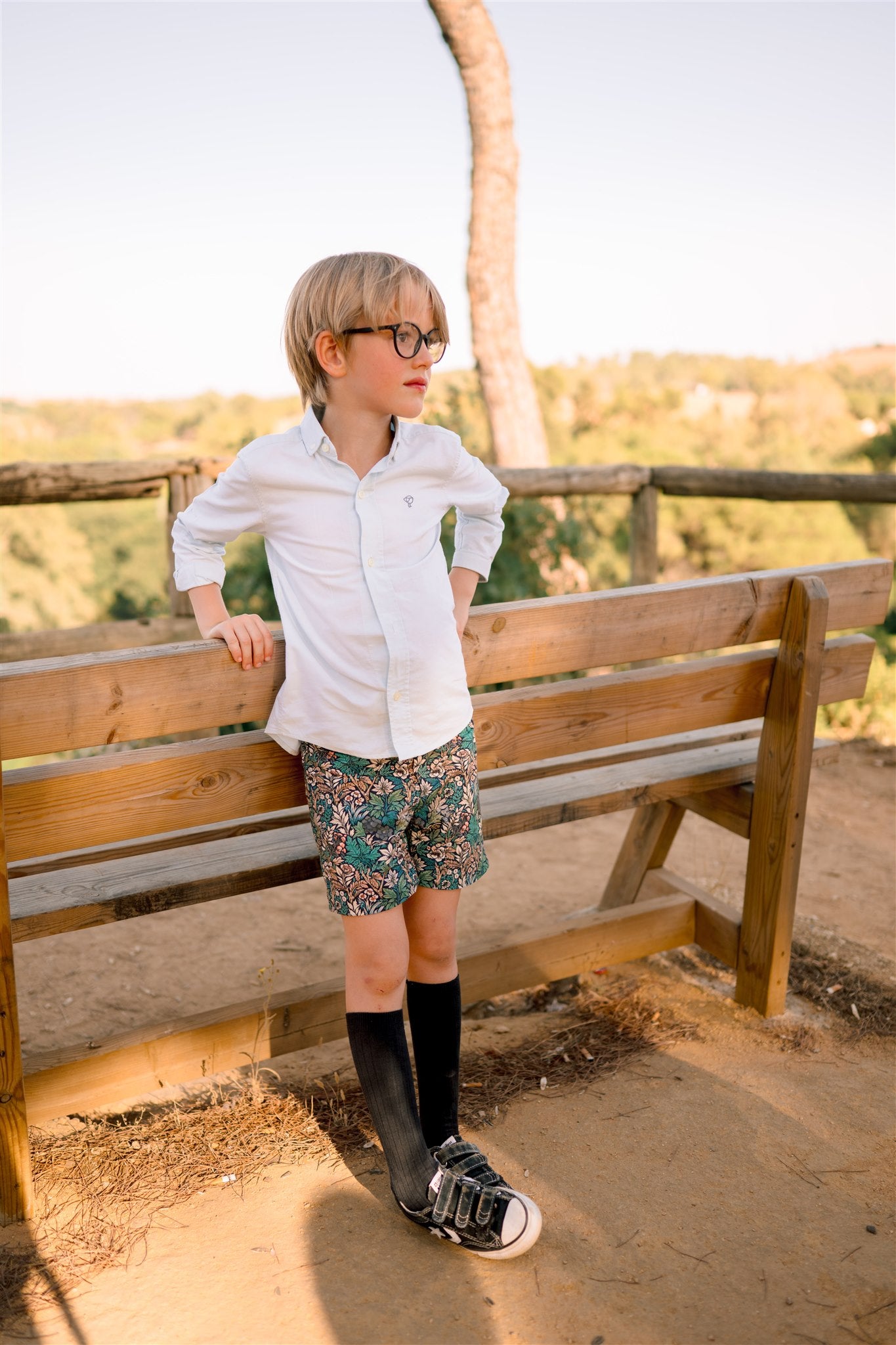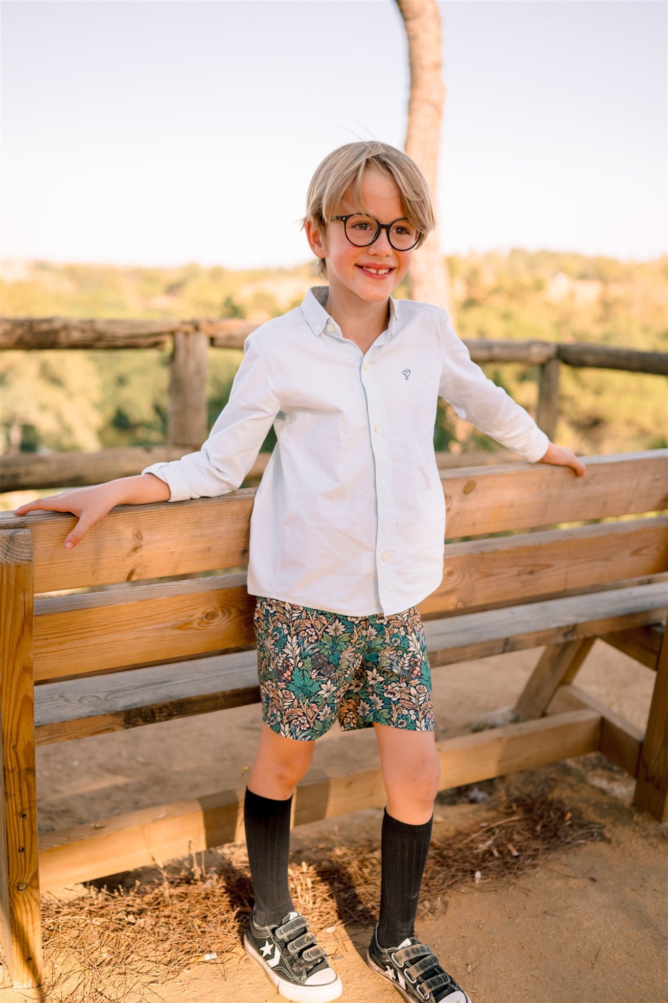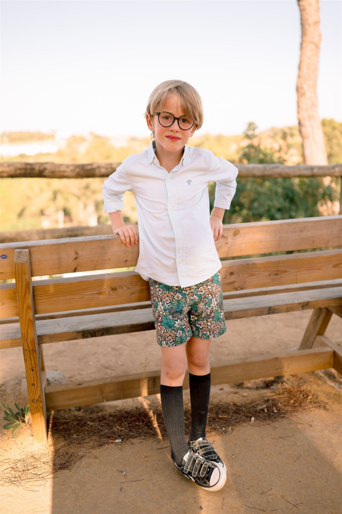 Pantalón estampado de nuestra colección exclusiva Iroko, confeccionado en algodón 100%. Abrocha con botón y dispone de gomas interiores para ajustar a la cintura.