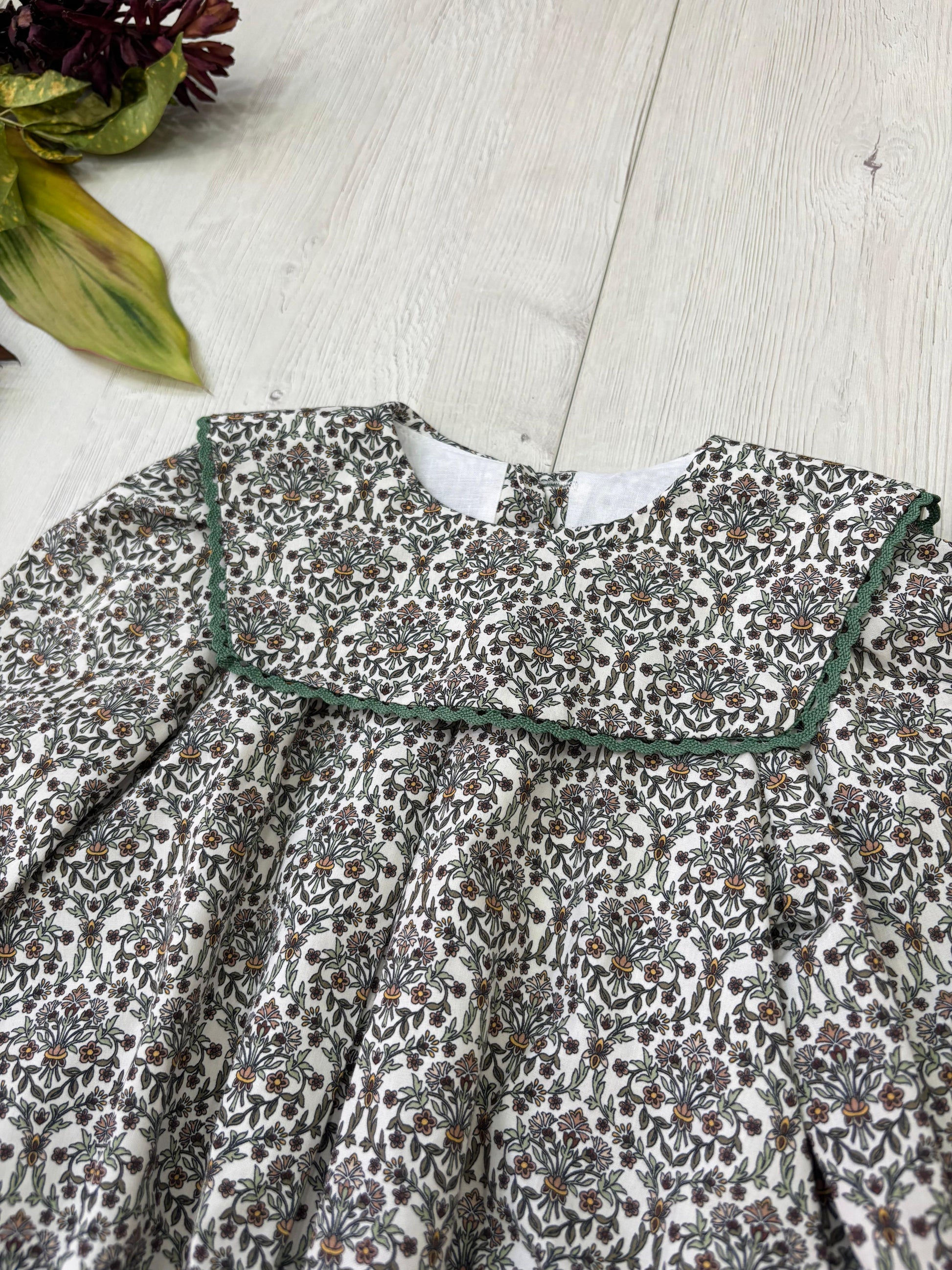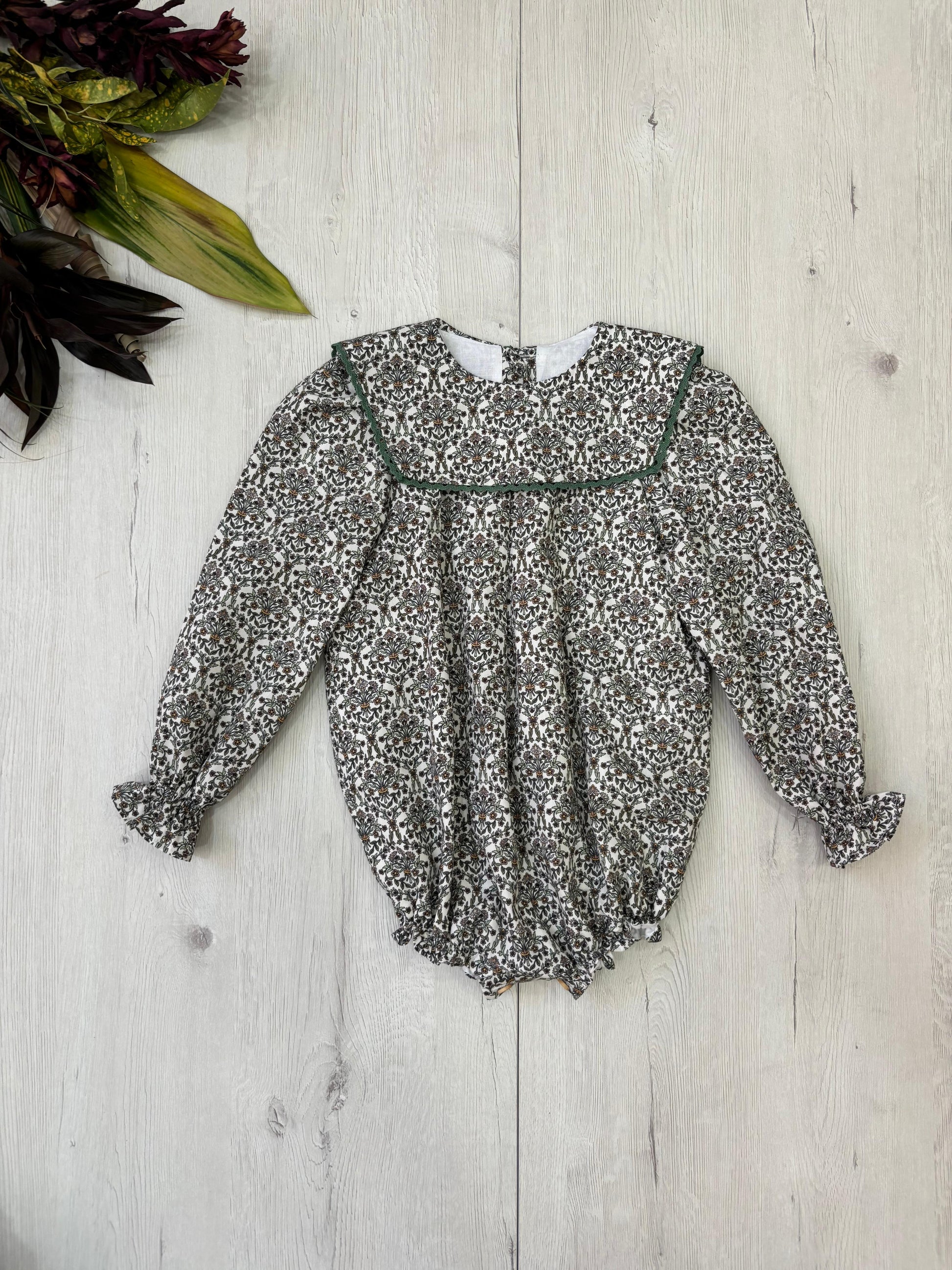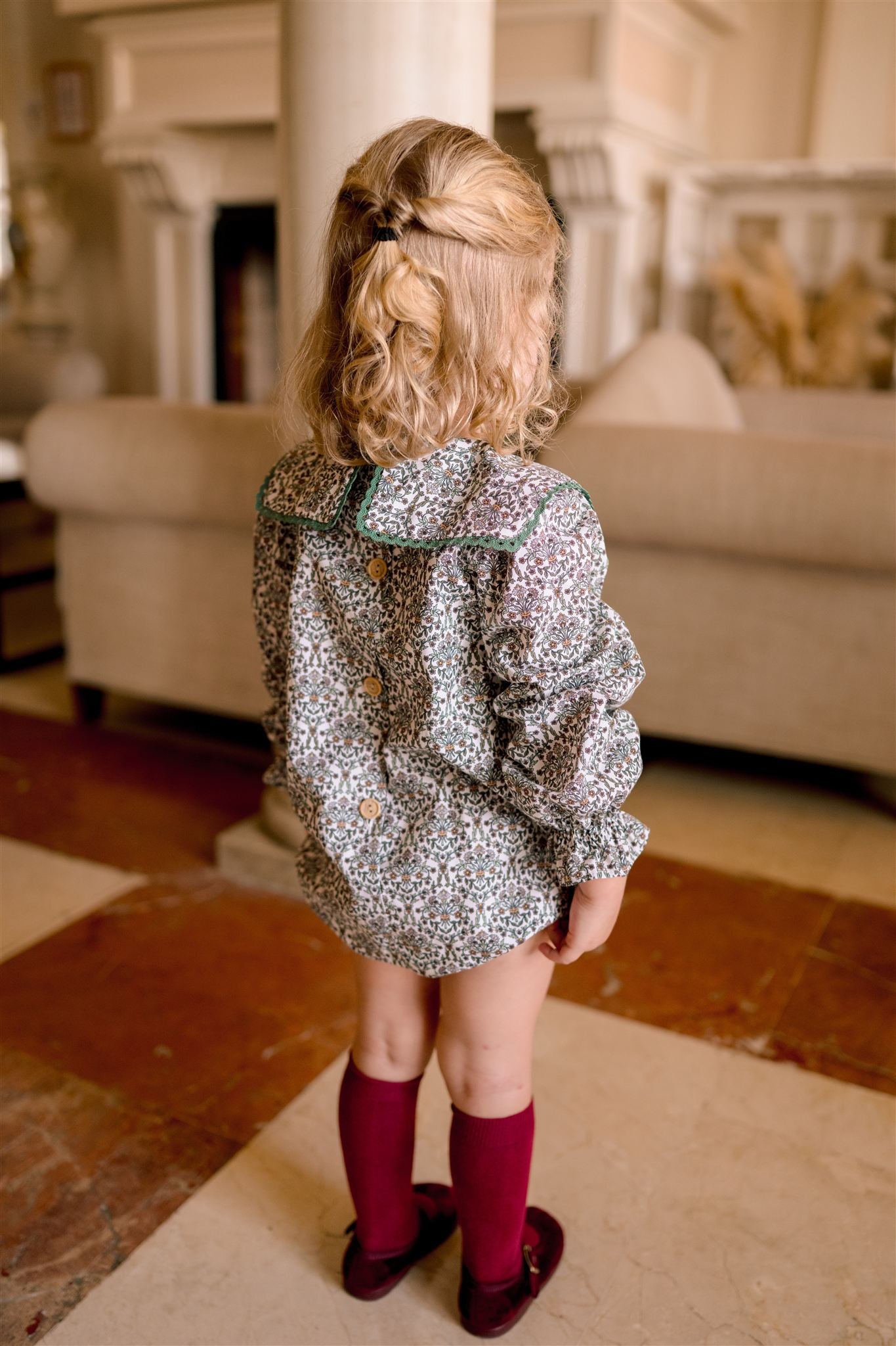 El pelele Moringa es una de las piezas más delicadas de la temporada. Su dulce estampado, los tonos neutros que lo hacen fácilmente combinable y el cuello estilo babero con el toque verde seco, lo hacen verdaderamente irresistible.