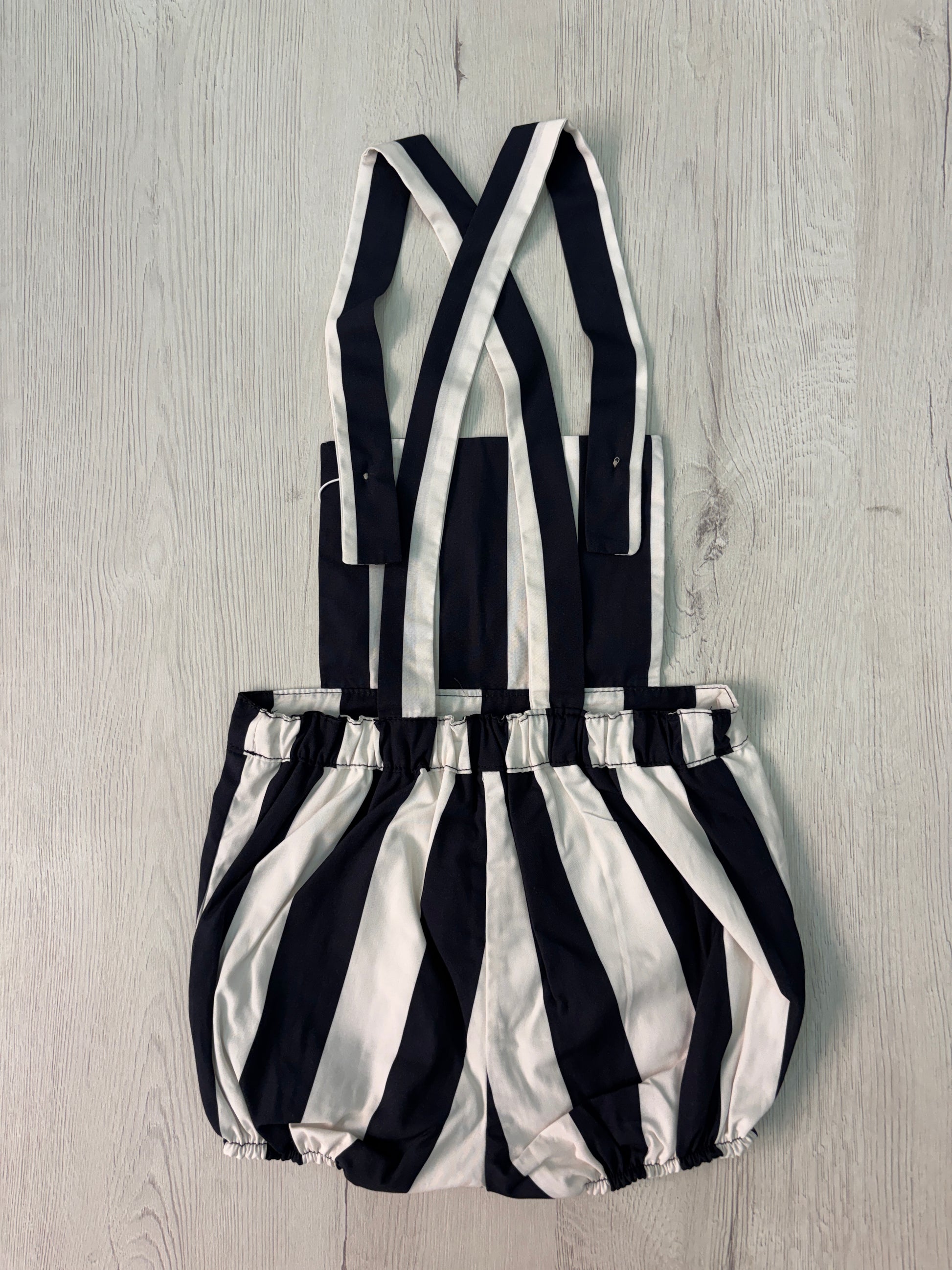 Tiene un corte bombacho con elásticos suaves en los muslitos que ajustan sin apretarles y es una prenda muy crecedera en el tiempo gracias a los tirantes con botón. Los peques están comodísimos y es una prenda apta para todo tipo de planes y situaciones.